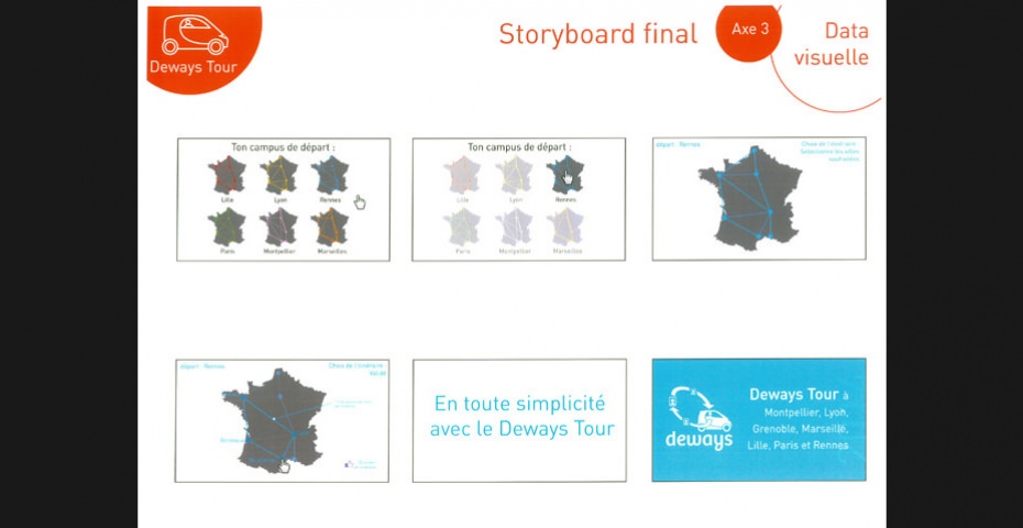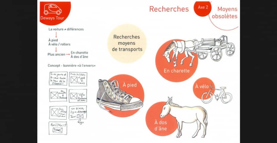 A partir du brief ("Deways.com, premier réseau social dédié à la location de voitures entre particuliers lance son DEWAYS TOUR en avril et mai 2014"), les étudiants doivent rendre 3 pistes de recherches.